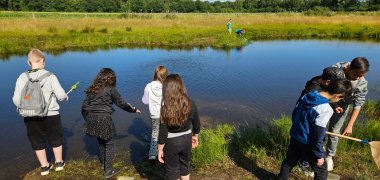 Под вещото ръководство на г-жа Хюнинг учениците уловиха животни от езерото, като "кормилни бръмбари", "езерни тритони", "ларви на водни кончета" и жаба. За да се наблюдават по-добре, животните бяха внимателно събрани и поставени в подготвени купички с вода. След внимателно наблюдение децата естествено пуснаха всички животни обратно в местообитанието им.
