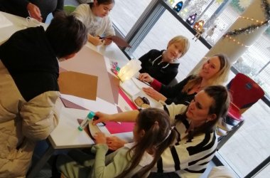 Αυτή τη φορά, τα παιδιά της Lindenkinderchor, με επικεφαλής την κα Guth-Albermann, παρείχαν τη μουσική ψυχαγωγία για τη δραστηριότητα χειροτεχνίας με θέμα "Χειμώνας και Χριστούγεννα". Πολλοί επισκέπτες μπόρεσαν να τραγουδήσουν με χαρά τα γνωστά κάλαντα "Jingel bells", "Dicke rote Kerzen" και "Schlittenfahrt, weißer Bart". Παιδιά και γονείς απόλαυσαν μια υπέροχη ατμόσφαιρα και χρόνο μαζί σε αυτό το ξεχωριστό απόγευμα στο Lindenschule.