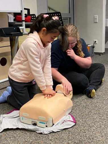The third-graders showed great motivation and asked many clever questions. Through clear explanations and playful exercises, they were able to gain confidence in dealing with first aid measures. The course not only provided them with valuable knowledge, but also raised awareness that anyone can help - no matter how old you are!