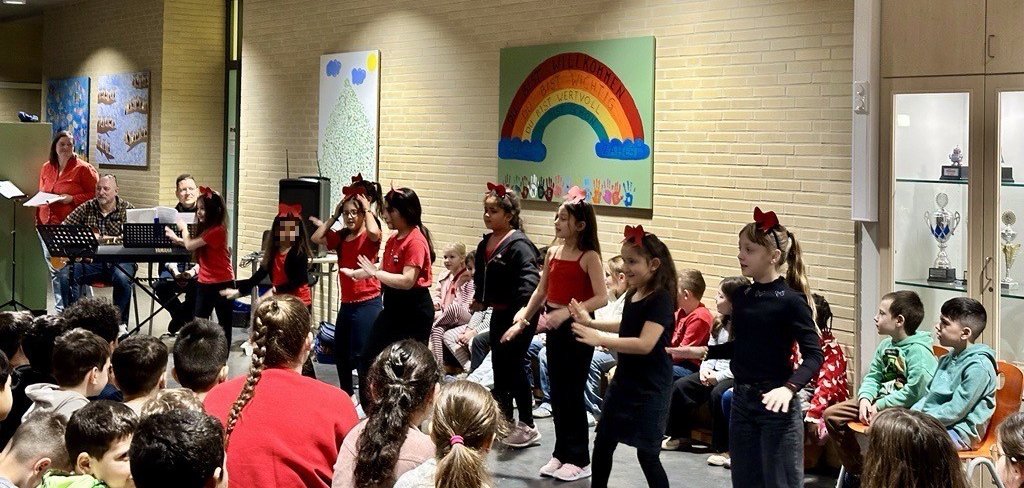 Zoals elk jaar begint de laatste schooldag voor de kerstvakantie met een gezamenlijke adventsviering. Alle kinderen, leerkrachten en pedagogisch medewerkers komen samen in de foyer van onze school om samen te zingen en elkaar blij te maken.