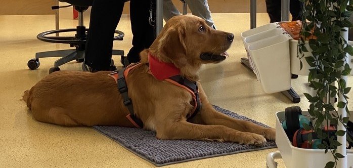 Monti nasceu no verão de 2023 e vive com a família da Sra. Brüning. Sendo um Golden Retriever, é conhecido pelo seu carácter amigável e social. Estas qualidades fazem dele um companheiro ideal no quotidiano escolar. O Monti não só apoia emocionalmente as crianças, como também as incentiva a trabalhar com motivação e concentração.