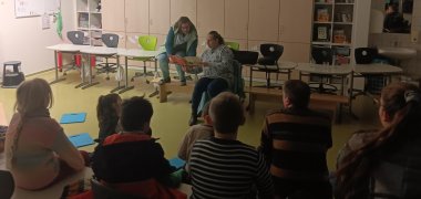 Po 30 minútach rozprávanie pokračovalo v nových malých skupinách. Tentoraz deti pozorne počúvali príbehy LAMA gang, dievčatko Vrbu, text zo Školy kúzelných zvierat, príbeh Mitgehangen, mitgefangen a z denníka mačky zabijačky. Samozrejme, v ten večer sa mohli nahlas čítať len úryvky z týchto napínavých, zábavných a nápaditých kníh. Všetky knihy sú však súčasťou školskej knižnice, takže každý žiak má možnosť požičať si knihu v škole a prečítať si ju sám.