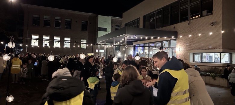 Po krátkom privítaní a obdivovaní fantastických lampiónov si všetci pod vedením pani Guthovej-Albermannovej zaspievali pieseň"The Man in the Moon", aby sa všetci dobre naladili. Potom sa sprievod svetielok vydal na cestu v sprievode gronauskej polície. Dlhý rad ľudí sa pohyboval po ulici Gildehauser Straße smerom k areálu Laga. Kvôli stavenisku v centre mesta sa tento rok sprievod mierne posunul, takže trasa viedla priamo cez areál Laga, okolo Rock 'n' Pop Museum, smerom ku kostolu svätého Antona a cez areál Laga späť ku škole.