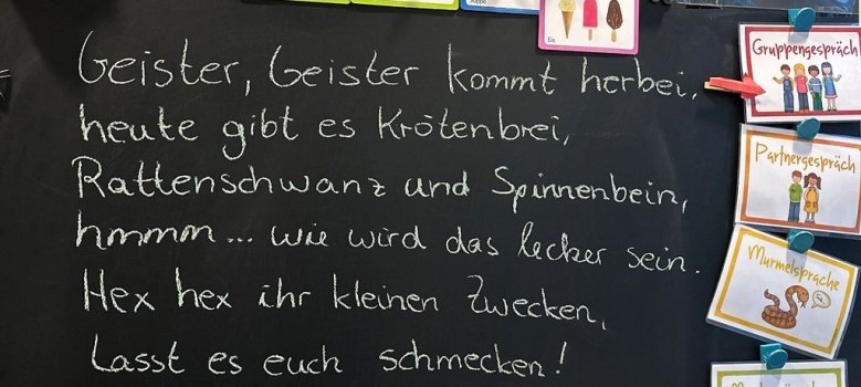 Büyük bir özveri ve detaylara gösterilen özenle kantin dost canlısı hayaletler, örümcekler, renkli mantarlar ve balkabaklarıyla süslendi. Öğle yemeği için söylenen uygun bir söz bu özel atmosferi tamamlamıştır.