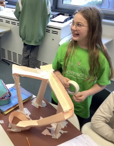 最后,学生们在课堂上对完成的大理石作品进行了测试,并听取了其他孩子的优化建议。经过最后的施工阶段,时间终于到了:年轻的设计师们在林登学校的门厅举办了一场精彩的展览,向全校师生展示了他们的大理石作品。