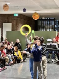 林登舒尔乐队 "领唱了整个节目。伊明克女士(Immink)担任上低音号手,古斯-阿尔伯曼女士(Guth-Albermann)担任长笛手,科赫先生(Koch)担任钢琴手,瓦赫特先生(Wachter)担任吉他手,克诺什先生(Knoche)担任次中音萨克斯手,所有的孩子和成年人都为他们的精彩表演而激动不已。为了准备这次学校活动,同事们之前花费了很多额外的时间进行排练,他们的努力赢得了热烈的掌声。